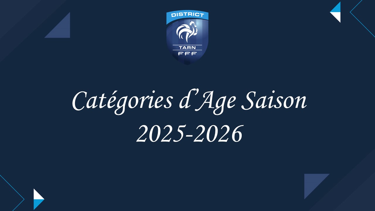 Madame, Monsieur, Nous vous apportons les informations suivantes quant aux catégories d'âge pour la saison 2025-2026. Article 66 des Règlements Généraux de la FFF: Les joueurs et les joueuses sont...
